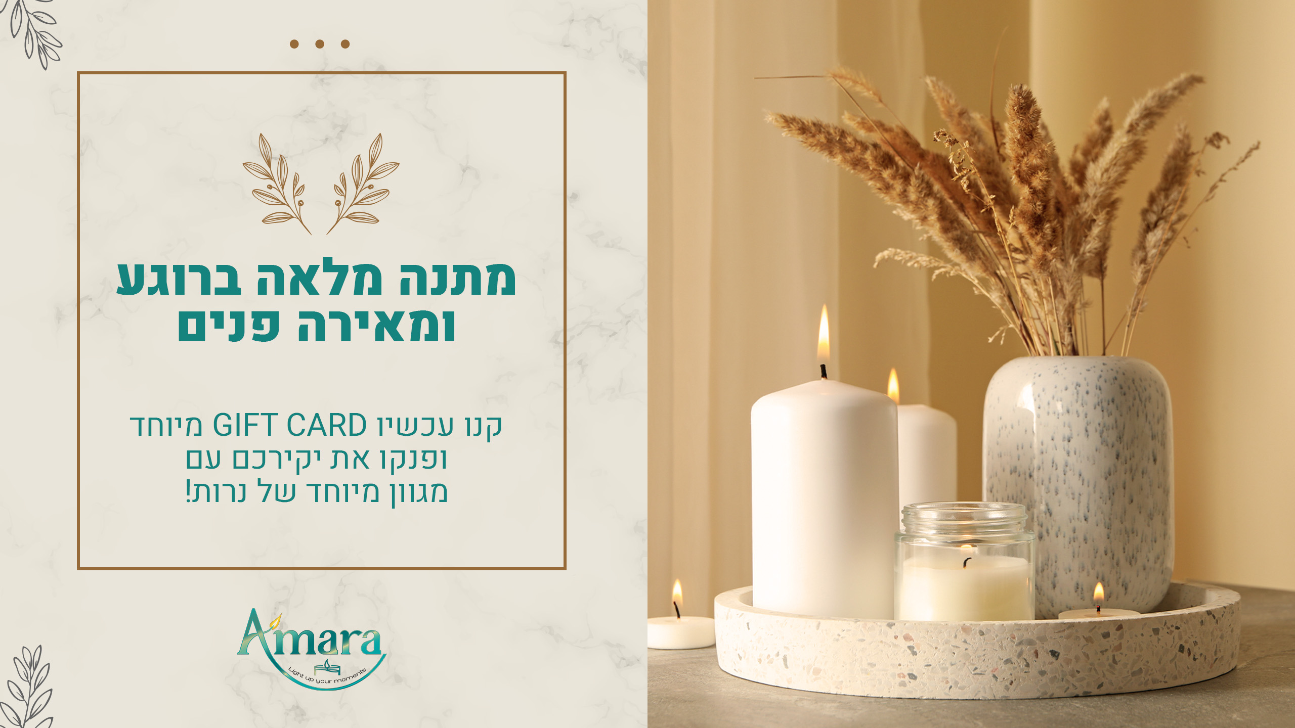 כל נר מעוצב בקפידה, עם תשומת לב לפרטים הקטנים, כדי להעניק לכם מוצר ייחודי ומרהיב שגם ישתלב בעיצוב הבית שלכם באופן מושלם.
