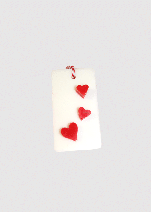 מפיץ ריח בצורה מלבנית עם קישוט לבבות , מתאים לתלייה בארונות , בחדר אמבטיה .