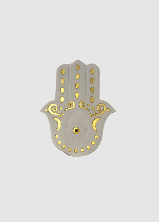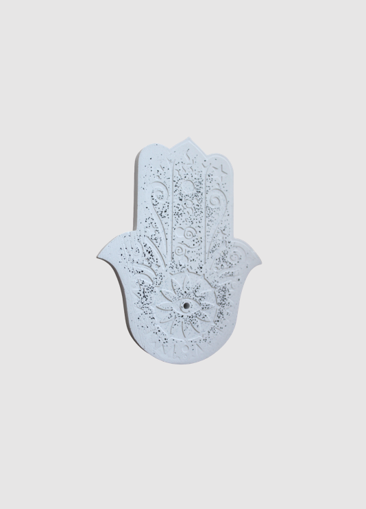 מעמד טרצו בצורת כף מזל (חמסה) עם קטורות בריחות רעננים מוספים לאווירת החדר .