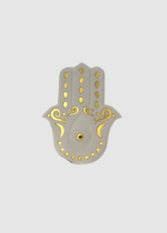 מעמד טרצו בצורת כף מזל (חמסה) עם קטורות בריחות רעננים מוספים לאווירת החדר .
