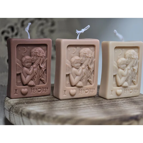 נר בצורת ריבוע עם ציור של אם ובנה .