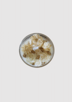 נר ריחני מעוצב בתוך כוס זכוכית שקופה בעלת תחתית זהב