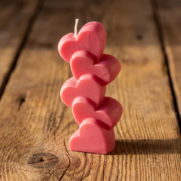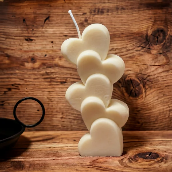 נר צורת לבבות בולטות , עשוי משעוות סויה/דבורים .