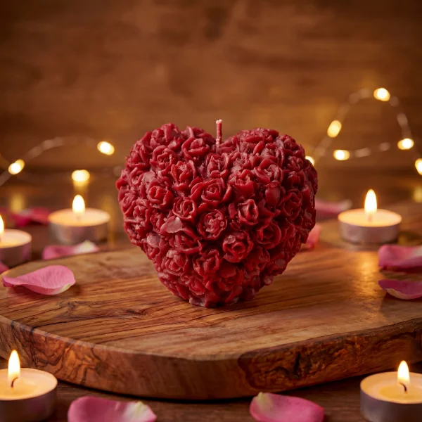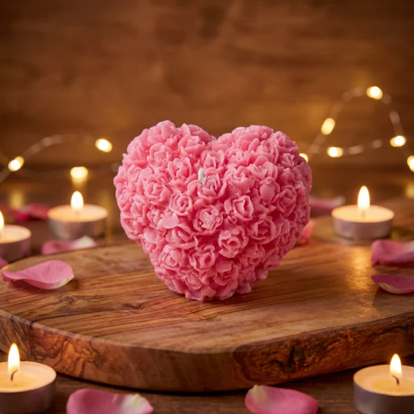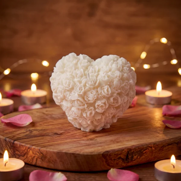 נר צורת לב קטן פרחוני , עשוי משעוות סויה/דבורים .